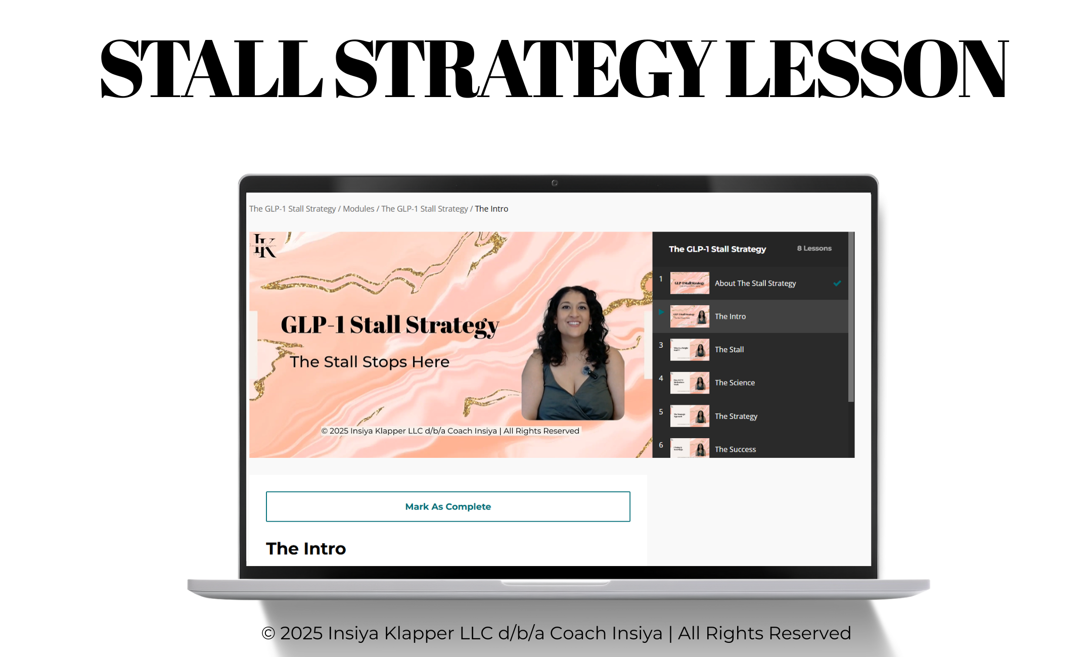 I know how hard it can be. That's why I designed The GLP-1 Stall Strategy to make it easy for you by providing clear guidance, strategic frameworks, and actionable steps.